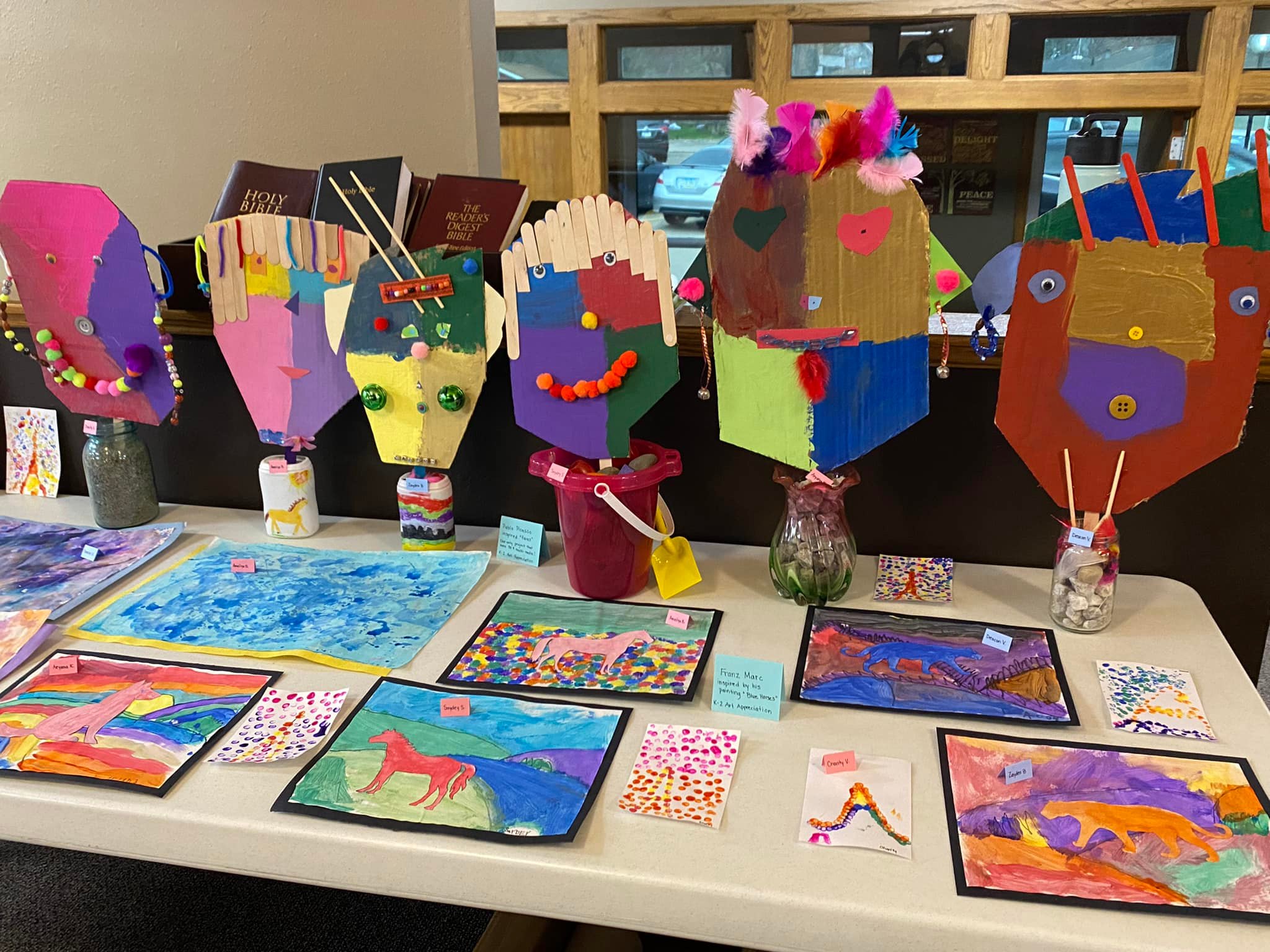 The K-2 art work I kept to present this year included inspiration from Franz Marc, Jackson Pollock, and Pablo Picasso.