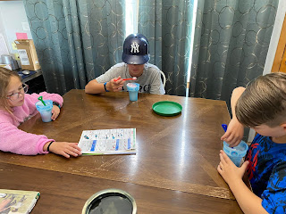Mike and Xavier were up and out early the next morning, bless them. The other kids got up and got their check lists done. There was no hippotherapy this week, so we didn't have to leave for appointments in the morning. I spent some time with my planner, calling and emailing our professionals to set up appointments for the upcoming months. The kids faced a little "boredom" this day with one less person in their mix for entertainment. I made some suggestions and Zayden ended up choosing the Snap Circuits to play with. These kept his focus for over and hour and would have for longer if Ameliya hadn't invited him to play something else. He got them back out Friday for quite a long time.