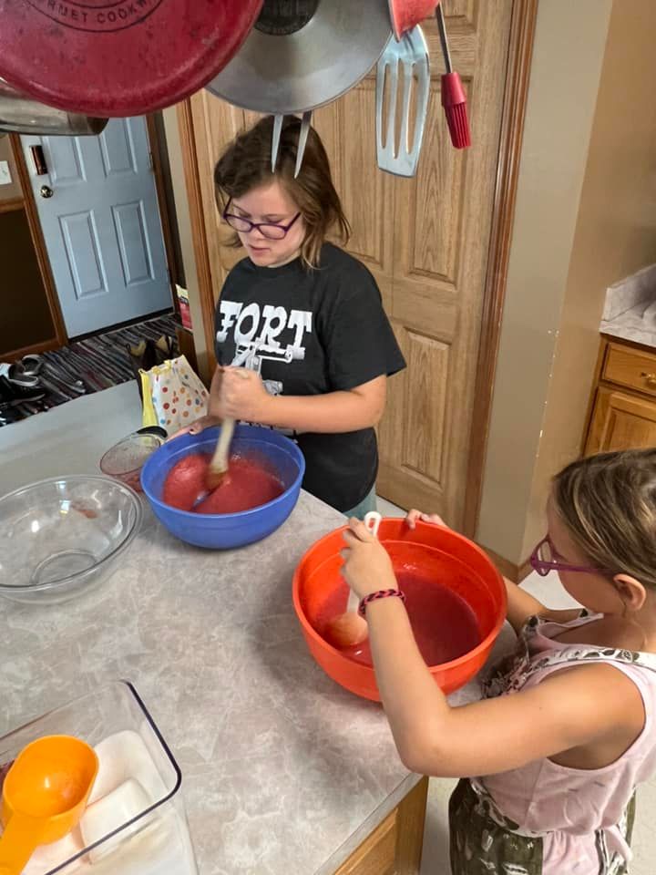 {Side note: when we were looking at moving we prayed for a house that we could use for hosting and for loving people like Jesus. We thought that would be something we bought and my mindset has been a little "stuck" here in the rental. God has been doing a mighty work in me lately and showing me that this house is quite sufficient for hosting and loving on people. Mike and I have been using the one line motto "houses are for living" to remind ourselves to welcome others in, allow messes, not stress the little things, and use this space for His glory. So when I sent him this video I jokingly captioned it "houses are for living??" and he replied "whoooaaaa. Yes, houses are for living." LOL. Turns out a bunch of middle age moms can make a jumble just like our kids. But it wasn't really a mess because we each had our niche and knew exactly where things were. As quick as that jumble was made it was cleaned up lickety split when we were done because we are efficient moms who don't mess around!}